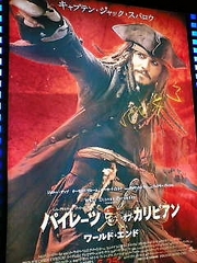 【パイレーツオブカリビアン-ワールドエンド-】見てきました!!さすがに満席!!21:00~。なにやら読本もらいました。それに相関図やどこに注目して見たほうがいいか書いているので。始まるまでの時間つぶしにどうぞ!!ジャックスパロウがかっこいいのは間違いない!!んですが。3部作じゃなくて5部作ぐらいでもよかったのでは・・??あれ?もしかして終わりじゃない?!登場人物いっぱい出てきて、大変!!今まで出てきてた人たちでいっぱいいっぱいだよ~でも、久々の映画。現実とは違う世界のお話。海賊のお話。面白かったです!!