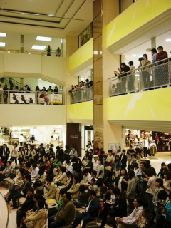 行ってきました~!!【IATゴールデンウィークスペシャルトークライブinフェザン】藤村先生の喝と嬉野先生の笑顔に癒されてきました!藤村先生、嬉野先生、そして、岩手朝日テレビ!!" °・:,。★\( ´_ゝ`)♪ありがとう♪(´ι _` )/★,。・:・° "岩手朝日さんのおかげで。私は、最新作も本州では一番先に見られるし。こうしてイベントで本物のお二人のD陣にも会える。岩手様様です(_ _(--;(_ _(--; !!でわ。超テキトーな思い込みレポート!!八戸を予定時刻の9時を少し遅れ気味で出発。しかし閣下の愛車によりオクレを取り戻す。高速途中で閣下上司のカトゥさんとすれ違う。笑予定通り11時に閣下の学友どうでしょう藩士宅へ到着~♪閣下はこの方がご飯抜きで並ぶなんてことは世界が滅びようとありえない!と断言しておられましたがっ!(実際はソコまでは言ってませんが。勢い的には・・・)「状況によってはご飯抜きも覚悟している!」という優秀などうでしょう藩士らしいお言葉。DVDの副音声も漏らさず聞くほどの藩士ですからっ!!で、フェザンに10分ほどで到着。ガ━━━━━━(゚д゚lll)━━━━━━ンやはり・・・というか、まさか・・・というか。スッッッッッッッッッッ━━━━ゲ━━━━━━━━人。こりゃ開店と同時に席は埋まりましたね・・・。会場の狭さも心得てはいたのですが。八戸発をこれ以上早めるほどの体力はなく・・・。無念・・・(-ι-З)。どうにかこうにか近くで2列目をキープ!!最終的にはもうなんていうか、身動き取れないほどの人の集まり・・。知らない人は、いったいどんな有名人が来るんだ?!と聞きまくる状況。閣下もどこかのおば様に聞かれてました・・・( ´,_ゝ`)プッ開始までの2時間、場所取りで動けません!ソノ間、ずっとDVDのメニュー画面でおなじみのオルゴール音がかけられています。あと15分おきに、アナウンスが入りました。【予定通り13時からになります。なお、大人などうでしょう藩士に申し上げるまでもないとは思いますが・・・】と、会場での事故防止と買い物客の邪魔にならないでとの注意。会場からは笑いが・・・。そうこうしてるうちに、IAT様(笑)のインタビューがおもむろに始まりました!張り切って・・・どうでしょうパーカー着て行っちゃった・・・( ゚∀゚)アハハ八八ノヽノヽノヽノ \ / \/ \いや、でも映ってないだろう・・・(゚д゚)(。_。)(゚д゚)(。_。) ウンウン15分前。とうとう協賛サイド我慢できずに【矢部 順子】アナ投入!藤村先生お気に入りだと言う【福田パン】を献上品として紹介。それと小岩井牛乳!紙パックですけど。※福田パン、検索かけたらやたら引っ掛かる! 俄然食べてみたくなりました~!!ドコから来ました?とか聞いて。半数は県外だったことに一同ビックリ。と、10分前にフライング気味ですが・・とお二人登場~!!!━━━━ヽ(〃▽〃 )ノ━━━━!!キタ━━━━ヽ(〃▽〃 )ノ━━━━!!!! ヽ(*´∀`)ノ キャッホーイ!!生藤村先生!!生嬉野先生!!!( ;∀;) カンドーシタで、席について、話始めました。ふ、藤村先生が・・・アナで見えない・・・。クッ……ヤラ( ゚∀゚ )レタ!!!ダメだ・・見えない・・・。あ!!見えた!見えた!ヒゲだ!ヒゲ!!!トークは冴えに冴えてます!!【札幌からの飛行機がえらい朝早いんだよ。】と話したところで。最前列のエリート藩士が「それに乗ってました!(゚Д゚)ノ 」と手をあげる。藤村先生すかさず【俺が話してるのに入ってくるなよ!】と一喝。会場爆笑。いつも最前列を押さえてる方もいるらしく。ソノ方たちを指差し。【こいつらなんて前もきてたよ。俺、もう、覚えちゃったもん!】と。藩士なら感涙のお言葉・・・。いいなぁ~(´∀`*)何回も岩手・盛岡を訪れているお話。盛岡の商店街が日曜なのに休んでいるのはすばらしい!【スペインかとおもったもん。】とか。福田パンでのエピソード。嬉野先生の日記にもあった岩手県民が一番親切だと言う話から。空港に着いたとたんになにか(餅?だっけ?)もらったと言う話。ONちゃんもって見てる人に、他局のマスコットだけどいいのか?と言い。IATのマスコットの名前聞いただけで、【ぱっとしねーな!】と一喝。笑IATさんの台本のネタふりもかなりの無茶振りで。「イイ話ありますか?」「笑える話ありますか?」とか。藤村先生がそれに対して。【ねぇーよ!】と一喝。フツウのサラリーマンなんだからっ!と。確かに・・・。そんな感じで。藤村先生が話し、話しつくして・・・嬉野先生に【で、どうですか?嬉野先生は?】とフル展開。前回岩手に訪れたときの話をして。IAT企画の次回作はなにか?!が見事にスベリ。通路ふさぐほどの人が溢れかえり。タチウチできなくなった会場の方から矢部アナにメモが渡される。「会場の皆様にお願いです・・・」と通路をあけるように促す。すかさず、藤村先生、【どきなさいよ!道あけなさいよ!あんたたち!】会場、爆笑&。さらに・・・。【通路とおる人も聞きたくなるようなこと話せばいいんでしょうけど・・聞いていきなさいよ!】。≧∇≦ブハ