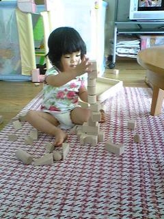 積み木の遊び方で発育の様子がわかるみたいです。ネットで見たら↓って書いてありました。●10ヶ月~11ヶ月 両手で積み木を打ち合わせる ●8ヶ月~9ヶ月 積み木を手から手にもちかえる ●18ヶ月~23ヶ月 3~4つの積み木を積むことができる りりぃ、本日10段達成。21ヶ月だもんねー。ハイ、クリア~!!笑ほんとちゃくちゃくと。成長してます。子供ってスゴイなぁ。
