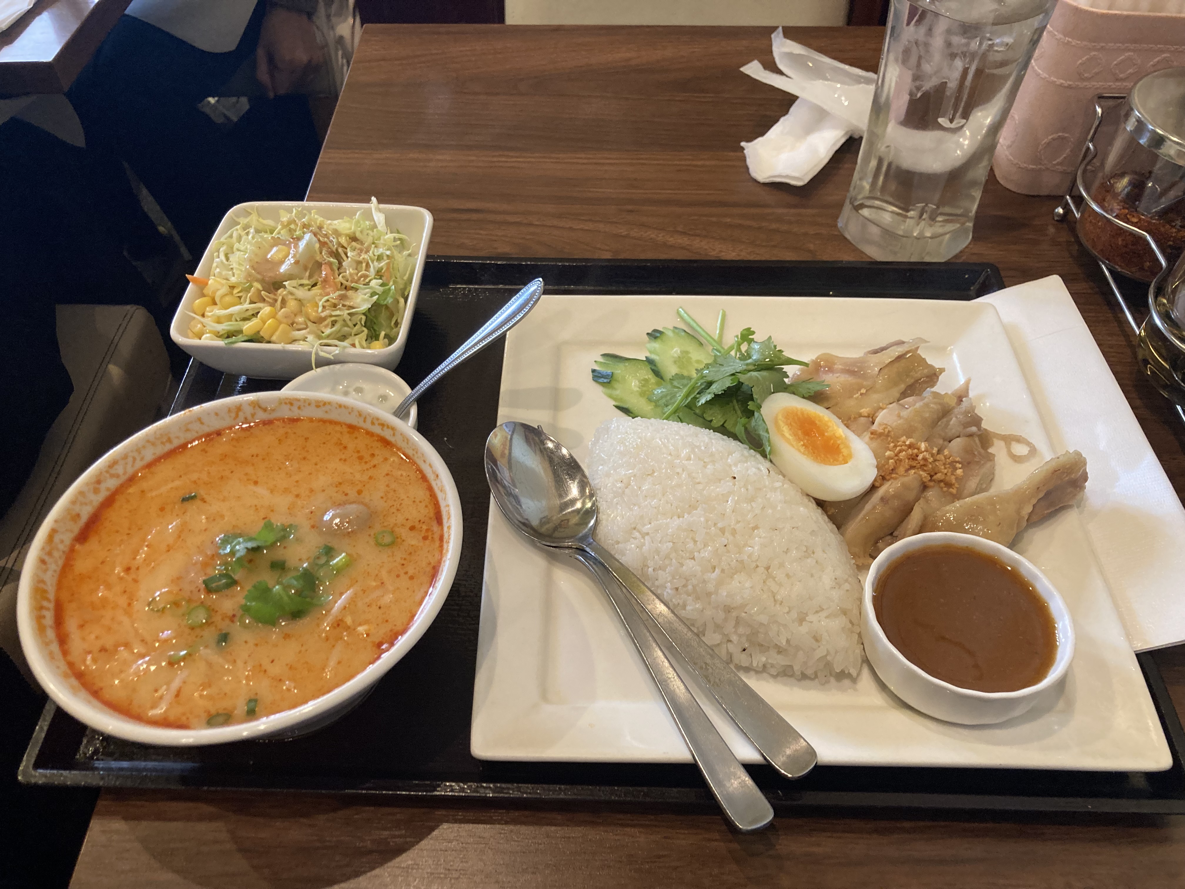 カオマンガイにトムヤムラーメンミニを付けました。ボリューム満点で、タイの家庭の味といった感じで良いです。