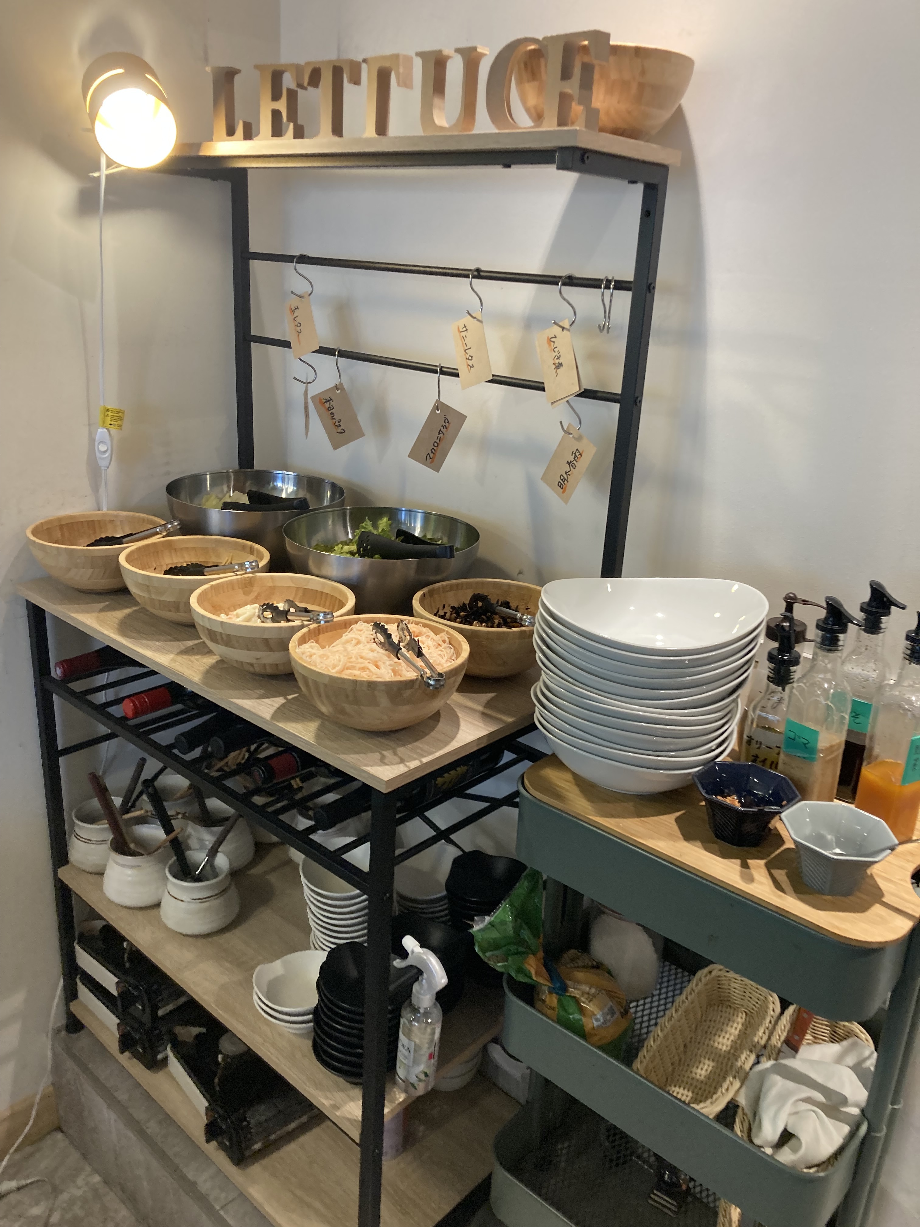 ランチもやっていて、一回取り切りのビュッフェ台もあります。