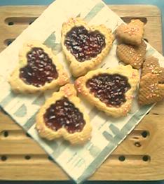 昨日KAYが帰ってくるまでにクッキー生地を作って用意しておいたの。で、今日のためにKAYとチョコのお礼のクッキーを焼きました♪木いちごジャムのハートクッキーたち♪型をポンッと抜いてジャムをスプーンで入れてまわりにスプリンクルをパラパラと・・簡単な作業だからKAYも楽しくパティシエ気分を満喫かな♪今日美味しいチョコレートをくれたお礼にお友達に渡してきました~★thanks a lot!!
