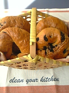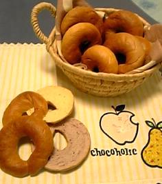 何とか弱っていた男子たち少しずつ回復してきてます。食欲も出てきてここ1週間は私だけがモリモリ食べてたんだけど(笑)夕食は久しぶりにみんなでモリモリ。やっぱりうれしい♪「ごちそうさま~」の元気な声が聞けたから片付けもすっごく楽しくできた私ってやっぱり単純さん。笑で、KAYが「ベーグル食べたい。」なんてこれまたうれし~~こと言っちゃったから「任せてっ!!」といきなり夕方に明日の朝食用に焼いちゃった♪シナモン&レーズンBAGEL(ミニサイズも♪)もともとBAGEL好きなKAY。さらにシナモンとレーズンも大好き♪普通サイズの半分生地でミニサイズも今回は作ってみたよ。かわいいね♪買ったばかりのチョコホリックのSサイズ木箱に3個も入っちゃった☆焼きたてをやっぱり食べたくなっちゃってKAYと一緒にミニ1個をパクリ。「明日の朝楽しみだね♪ママ」だって。も~~かわいいっ!!←親ばか 笑