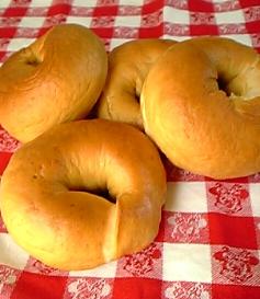 今日はおやつ用のBAGELを焼いてみましたぁ♪あれ?またBAGELかよっ!なんて声がちょろっと聞こえてきそうだけど・・・いいの♪MYブーム・MYブーム♪♪カボチャ&むらさき芋BAGELS!このこたち普通サイズの半分サイズのミニ。クオカで買っておいたかぼちゃ&むらさき芋パウダーをそれぞれ投入。もっときれいに色が出るかなぁと思ったんだけどちょいビミョ~だったね。涙次回はもうちょっと多めに入れてみよう♪早速KAY&HALでおやつにかぶりついてました。このもちもち感がイマドキの子供の弱いあごを鍛えるのよ~~でもHALはちょっと「おえっ、」ってなってたけど。笑