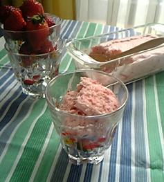 昨日冷蔵庫を見るとついつい安いからって買ってしまうイチゴたちが思った以上に野菜室を占領しててビックリ!!そこでDelisに載ってたイチゴのムースをKAYと一緒に作ったよ。いちごた~っぷりイチゴのムース♪つぶつぶ感を残す為にフープロではなく(・・・っていうかKITE家にはございません。笑)KAYがボウルに入ったいちごたちをフォークの背でぎゅうぎゅうつぶす作業を買って出てくれて(子供はこういうの好きだよね♪)なんだか食べ物を扱ってる様子まるでナシ状態(笑)だったけど頑張ってました。今回はココットなどには入れずにパウンド型に冷やし固めてスプーンで食べる分だけスクープするようにしてみました。ちょっと生クリームを8分立てのところ9分立てちょいまでいっちゃったのでなめらかというよりはふわふわだったけど・・・苦笑今朝のブランチの後デザートでみんな好きなだけセルフでスクープ♪あれ??やっぱり私が一番モリモリとっちゃってた。←食いしん坊参上!!笑