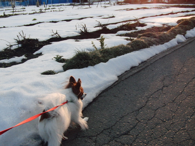 6日 朝の散歩より。新雪があるとキラははりきりボーイです。ここんところ暖かかったけど、まだ春は遠いですね。今日は1日降っていました。