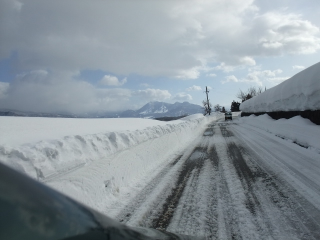 (飯山市太田地区にて)大雪になりました。日曜日なので雪かたづけができました。(中野市西条にて(家の近所で))中野の除雪は雪を道の両端によせるだけです。飯山は路面がすぐ出るようにしっかり除雪します。