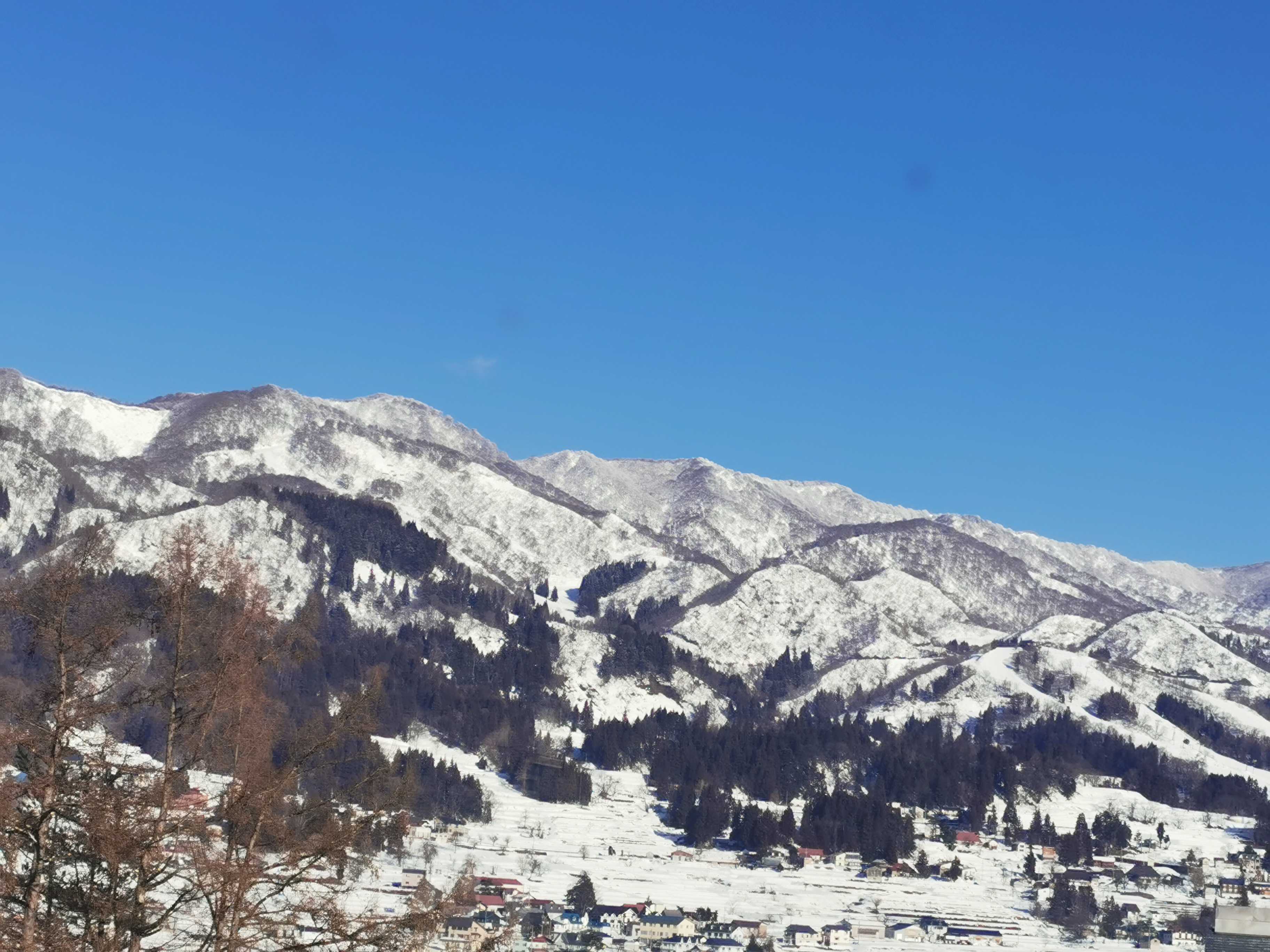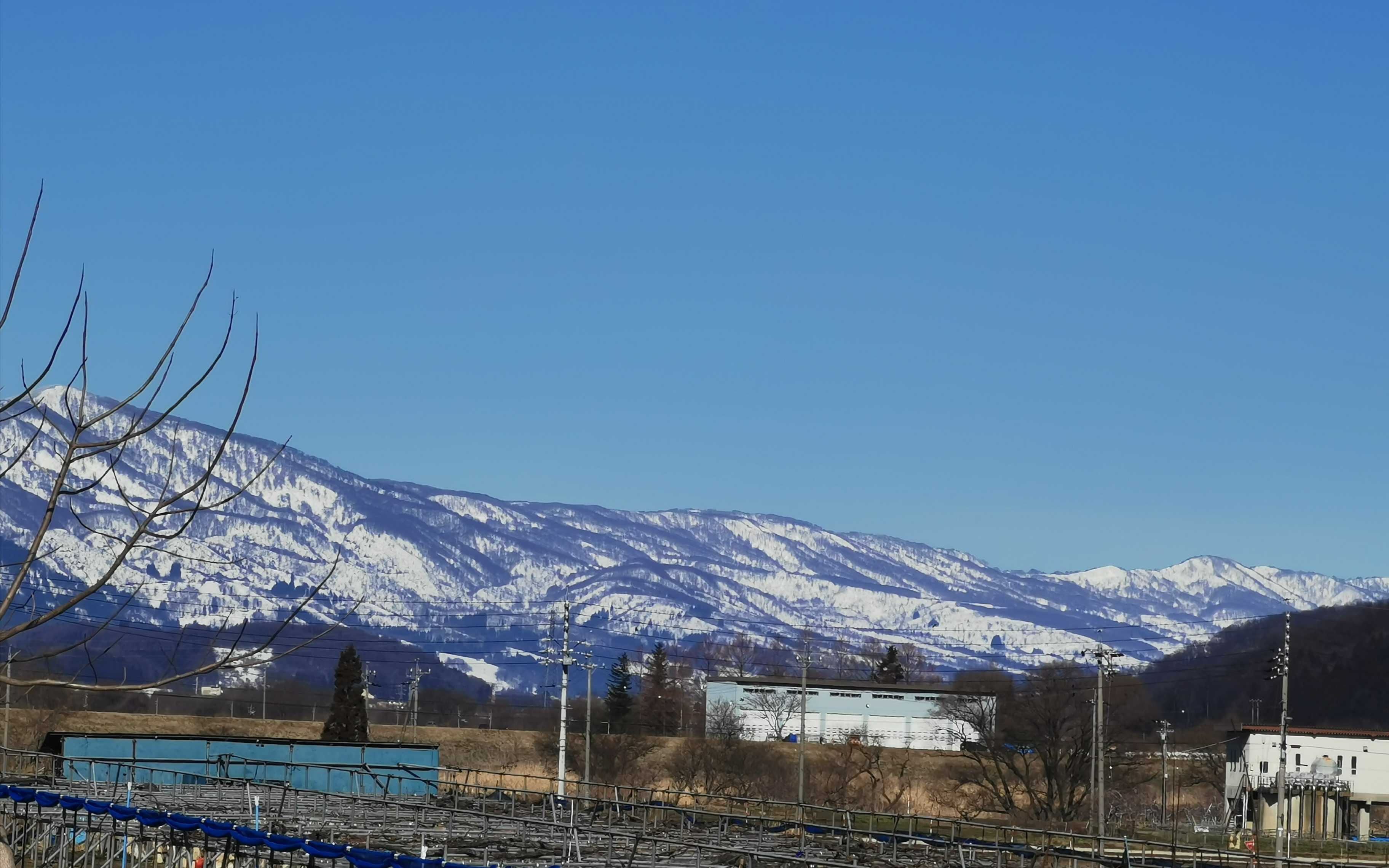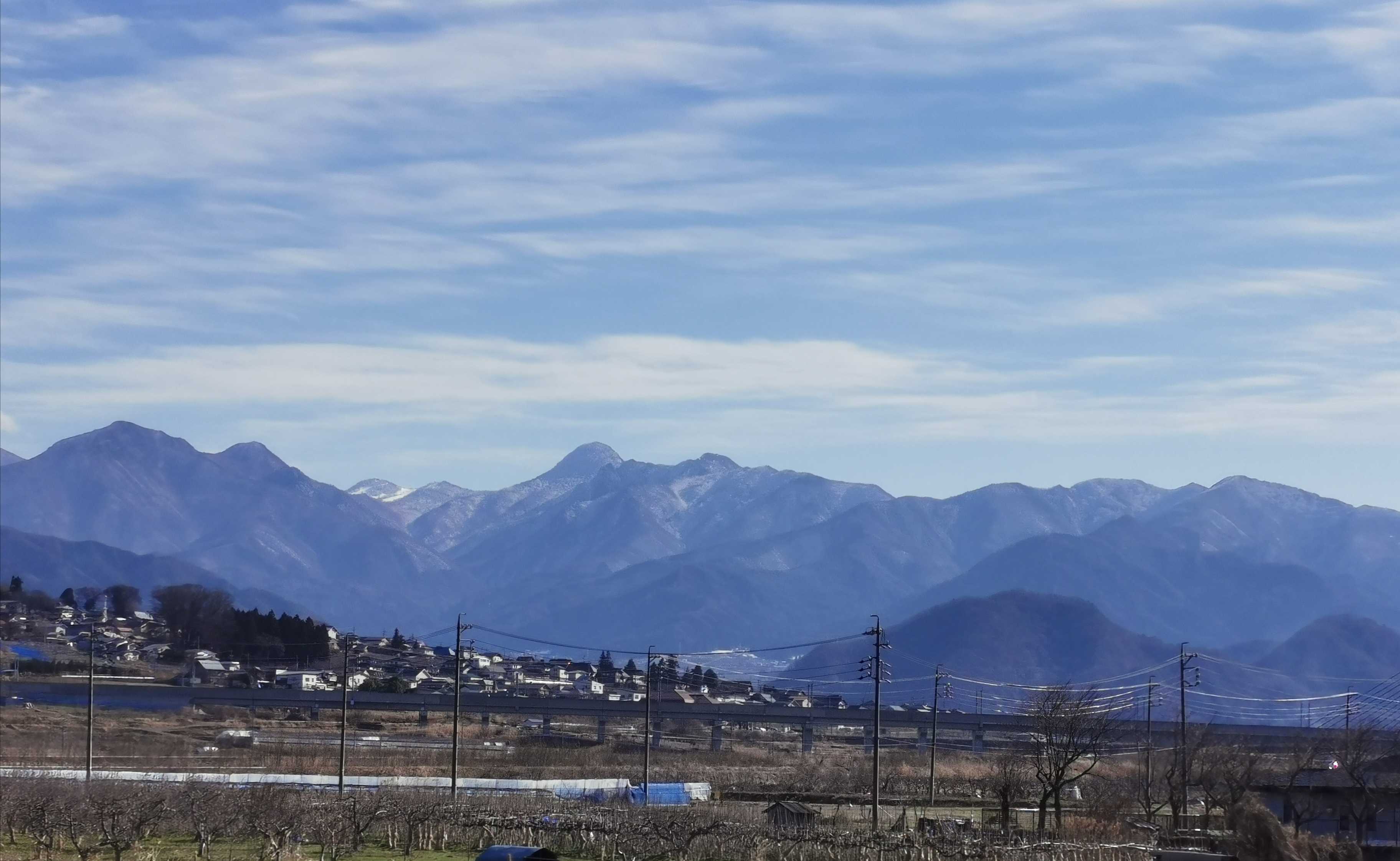 飯山市岡山方面 山が白いです。(中野市古牧から)