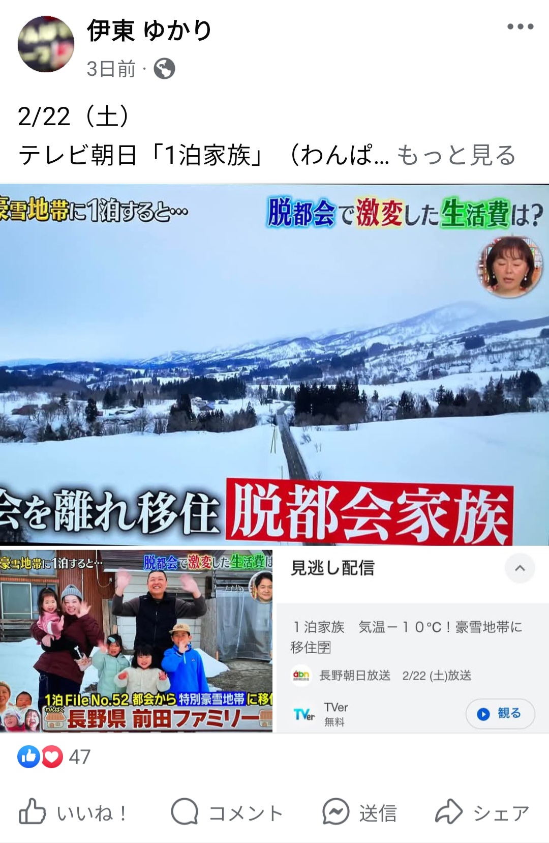 追伸 r7年 2月にその後の様子のテレビ放映がありました。画像は伊東ゆかりさんのfacebookより