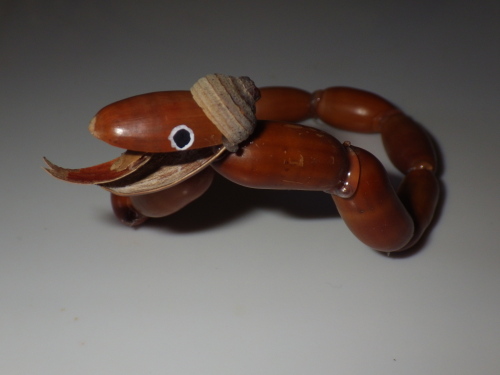 昨日のどんぐり工作の続き、蛇の頭もどんぐりにしたかったので作り直してみた。どんぐりで作った蛇なのでスネイグリです。2012.12.03 寝屋川市にほんブログ村