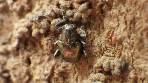 四条畷市ふれあいの森にあるケヤキの樹皮をはがしてみた。サルハムシらしき小さな甲虫が1匹いた。ネットで調べてみたらドウガネサルハムシに似ている。ノブドウやヤマブドウ、ヤブカラシ、エビヅルなどの葉を食べるとあった。体色は変異が多く銅色、赤銅色、青緑色などがあるという。冬はこんなところで寒さをしのいでいるのだ。2015.02.10 四条畷ふれあいの森にほんブログ村人気ブログランキングへ