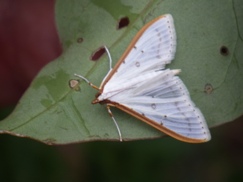 小雨の中、淀川野鳥観察(寝屋川自然を学ぶ会)に参加。お隣ではシニア自然大学主催の野鳥観察会が200名もの大人数で開かれていた。(こちらは13名)淀川資料館前を出発し磯島野球場まで往復し初ひばり、鶯の初鳴きも含めて40種の野鳥が観察できた。野鳥はほかの人がどこかにアップするだろうから、たったの一匹しか会うことのできなかった虫を紹介します。 マエアカスカシメイガという長い名前の蛾。幼虫がネズミモチ、キンモクセイ、イボタノキ、オリーブなどを食べるため街中でも普通に見られる種です。3月ごろから出現するので今はちょっと早いですが、ネズミモチの葉裏に隠れていました。2015.02.22 淀川河川敷(枚方)ご訪問ありがとうございます。よろしければ下のバナーを押して応援をお願いします。にほんブログ村