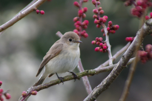 寝屋川野外活動センター整備に参加、午前中は小川の周りの雑草の刈り取りや階段などに積もった枯葉の清掃を行う。昼食後は恒例の自然観察会。池にはキンクロハジロが来ていた。イワナシはピンク色の蕾を付け、シュンランも蕾を立ち上がらせていた。 虫は少なく、写真の蛾が棟の壁に1匹張り付いていただけでした。この蛾の名前はハイイロフユハマキといい、名前の通り冬から早春に現れる蛾です。ハイイロフユハマキ2015.02.23 寝屋川野外活動センターご訪問ありがとうございます。よろしければ下のバナーを押して応援をお願いします。にほんブログ村