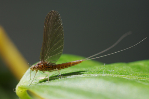 幼虫が脱皮して翅が生えて飛んでいった先でもう一度脱皮して成虫になる。亜成虫という段階を経る昆虫はカゲロウだけだそうだ。この写真の虫は今朝マンションの階段で見つけたものです。全体に硬そうで色も濃い。たぶんシロハラコカゲロウの亜成虫だと思います。2~3日で脱皮するでしょう。2015.02.13 寝屋川市にほんブログ村人気ブログランキングへ