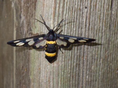 寝屋川公園自然の会定例観察会。きょうは打上川沿いトリムコースの樹木を調べて歩いた。この辺りは昔の里山の面影が残り、斜面にはシャシャンボやヒサカキなど周辺の山で見られる植生がありました。 今日の虫は昼間に飛び回る蛾、白と黒のコントラストの美しい翅をもつカノコガです。林縁の明るいところであまり上手ではない飛び方をしている姿が散見されました。2013.06.10 寝屋川公園にほんブログ村人気ブログランキングへ