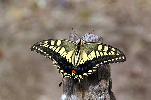 今日の出会いは、山頂付近にいたキアゲハです。この枯れ木が気に入っているのか、何度も飛んできてはとまっていた。