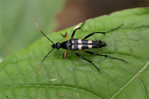コウヤホソハナカミキリ、杉を食樹とし、成虫はリョウブの花によく集まるらしい。