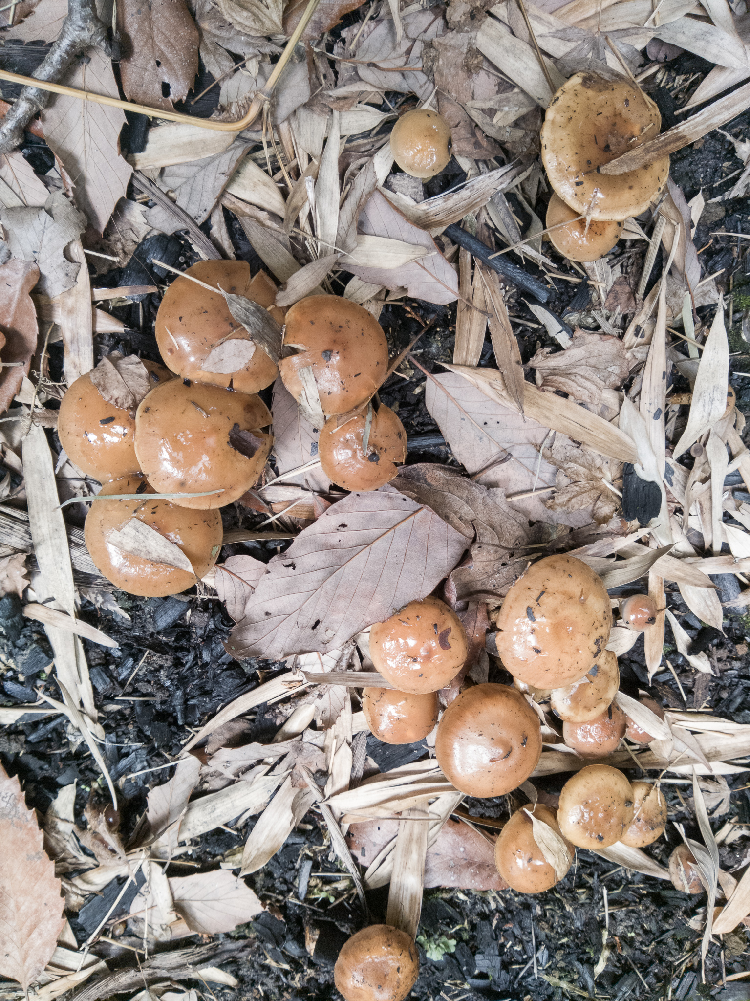 タケノコを探しに竹林を歩くと今回もヤケアトツムタケがびっしり。