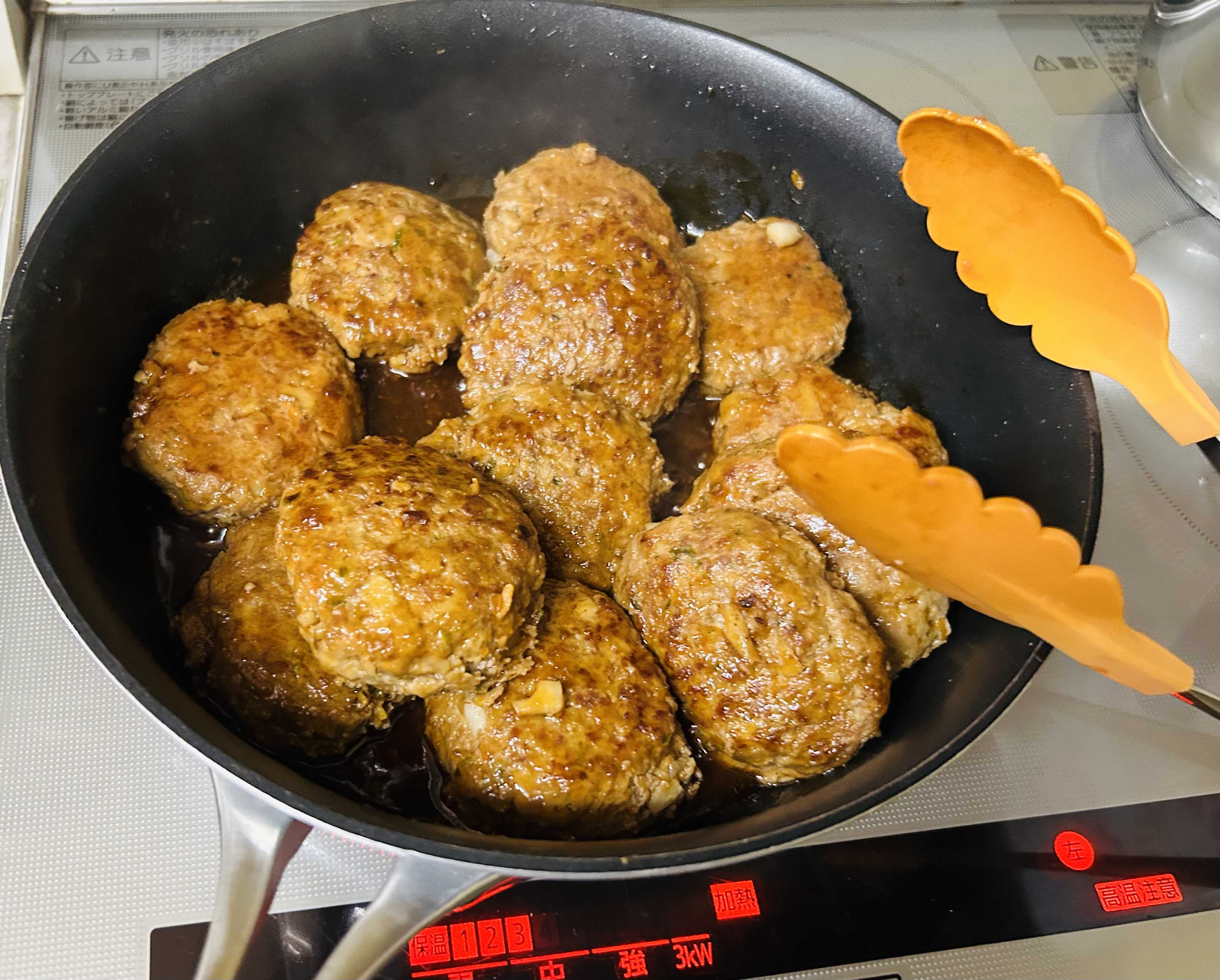 この前、ちび💛ぴょんが喜んで食べてくれたレンコンやニンジン、ピーマンの入ったハンバーグ!