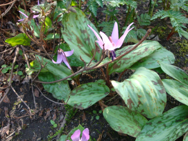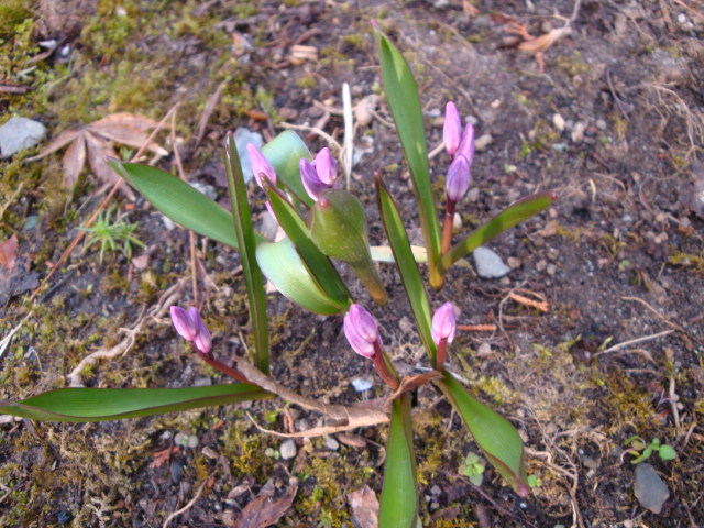 4月10日今朝の最低気温0.5℃今朝はプラスの気温になりました。自宅庭に、今年もカタクリの花が咲き始めました。写真は、花が開いていない状態です。今日の午後からは天気が悪く、雨になる予想です。じゃがいもの植える畝を作っていないのでそれができたらいいです。雨よ早く降らないでください。