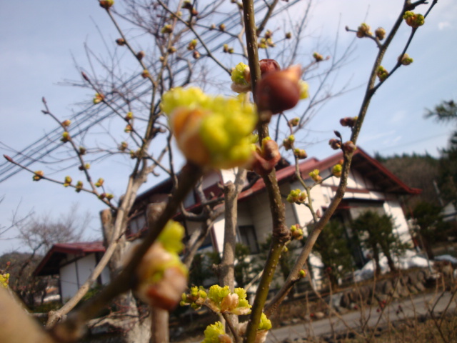 3月28日昨日は、最高気温が26℃まで上がりました。信州北西部の3月の気温としては過去最高ではないかと思います。でもこれで再び寒の戻りがあるようです。4月というのに朝の最低気温が氷点下です。やっと庭の「ロウバイ」が開花しました。ここらでは梅も、ソメイヨシノもレンギョウもすべて同時期に開花しそうです。4月中旬頃だと思います。そろそろ畑の雪もなくなったので管理機の出番です。