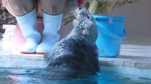 前日の雨天が嘘のように(そして予報通り)快晴。それを見込んだ予定は、、はい。またまた鳥羽へ行きました。先週は体調がイマイチだったんだな。という反省をもとに前夜、めっちゃ早く寝ました午前中は精力的に動き回ったけれど、昼の給餌を見るときに、列に加わるタイミングが悪くて直前に1分過ごしたあと、次に前列1分の際にはすっかり給餌が終わったあとでした。それを踏まえて、夕方の給餌前には極地の海付近は列に加わるのを渋る人たちで満員。貝展の周辺も、バイカルアザラシの前(上)の丸いソファ、極地の海の長椅子にもびっしりと座る人たち。早めに入ると次に列に加わることさえできないのは明らか、と察した人たちで一杯でした。4時を過ぎると次々に列に加わる人が「でも今で大丈夫なのか、さっきは途中で離脱した人がいた」と不安の声も聞こえました。平日もこうなんだから土日は推して知るべし。。。。とても休日なんて行けない。(というか仕事だからどうせ行けないんだけど)メイちゃんキラちゃんの水槽を模したミニチュア水槽ホラ貝いいよね。 暗かった。。ねむねむメイちゃんキラちゃん