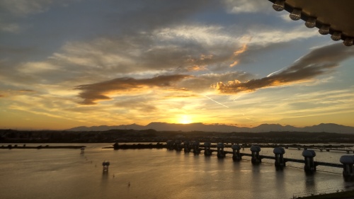 鳥羽の日のラッコイベント早い者勝ち的)受付に間に合わなかったのですが、イベントが発表される前から「鳥羽の日」は水族館で何かある!と休みをとっていたので本日鳥羽に行ってきました。朝、やはり思った以上に開館前に人の行列ができて、しかも10月にしては暑い朝。開館後、そのまま売店にも寄らずに極地の海へ。しかし「お絵かき水族館」さんにはこれまた行列ができました。鳥羽の日限定商品が発売されてたんですよね。給餌前に最初の1分を過ごしてからその後の列の一番後ろはやっぱりそこか、て水の回廊に出てすぐ左のスロープのところ。ようやく極地の海まであとちょっと、ってところで前にいらしたご夫婦らしきおふたりが、前から歩いてきたご家族かお友達を「ここだよ、早く入りな」と招き入れたのです。もうすでに後ろは長い行列。思わず言いました。「並んでください。みなさん後ろにずっと並んでいます」そう言うと一度列に加わった人たちはちょっと怪訝な顔をされていましたが、最初からいたご夫婦が「あ、だめだって」と促してくれたのでその人たちは後ろへ。繰り返し音声で「合流はできません」と流れてきたのをようやく聞き取ったご夫婦は「合流できないんだ。悪かったなあ」とおふたりで話し合っているのが聞こえました。わたしの横にたまたまいらした若い女性がわたしが「後ろへ」と言ったことに対してお礼を言ってくれたんですが、ルールですもんね?それがきっかけで次の1分までの列で、その女性と少しお話ができました。***イベントには参加できず、いつもの観覧を続ける1日となりましたが、今日もメイちゃんキラちゃんはとても元気でそれを肉眼で確認できて満足です。今日撮った写真の中でメイちゃんキラちゃんが揃っていて一番まともそうな写真がこちら他人の頭が写っちゃってますけど(爆笑)帰りはJRの快速みえに乗りました。走り出して気づくと夕焼けがとてもキレイで思わずスマホで撮りましたが、、車内の照明は写ってるし、動いているのでタイミング遅い。でも本当にキレイな夕景が見られました。一瞬、川に夕陽が映っている場所もあって、それはそれは言葉にできないほど美しい場所もあっという間に過ぎていきました。(撮れなかった言い訳)本日もなんだか後悔のある日だったんですが、景色に救われた気がします。