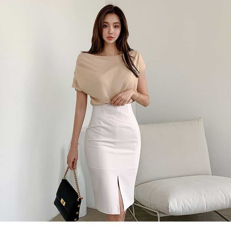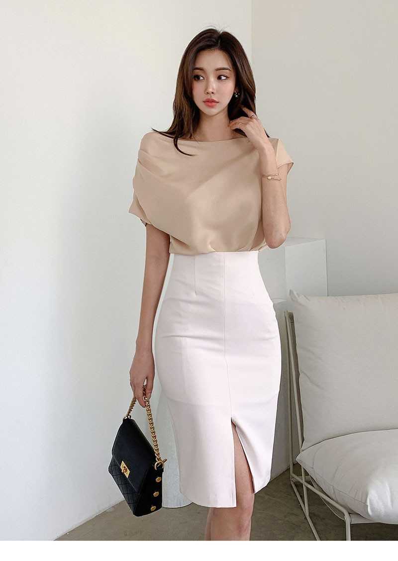 フロントスリットタイトスカート アイボリー ブラック ネイビー