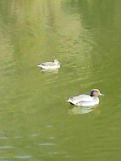 散歩道にて、鴨と出会う。優雅に水上を滑るように。