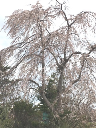 例年きれいに咲く某施設の枝垂れ桜はまだ少し早いようです