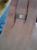 今日はお昼から家で長男とおとなしく過ごしています。お天気も曇ってて、寒そうなので外に出たくないな~って思って。明日は幼稚園なので、私も少し緊張気味です。長男は全く分かってないようですが・・・・長男を出産して、ずっと結婚指輪を外していました。正確には出産の前からムクんでたので、外していました。産後も赤ちゃんに触れるときに指輪が気になるので外していました。その後・・・・・体型が少しポッチャリしてしまって、そのお肉が指にまでついたようではめられなくなっていたんです(泣)もうこれは一生はめられない・・!!って思っていました。次男のツワリの時も痩せたので、はめてみたけど…何とか入ったって感じで血が止まりそうでした。なので、せっかくのリングだったのに自分のせいで。と本当に情けない思いだったのです。主人は男性の割りに指が細いらしく、13号あたりで、今もしっかり薬指にはめています。その指を見るたびに、私は切ない気持ちになっていました。それが、今日ふと思って、恐る恐る指にはめてみたのです。はいりました~~~~~^^v嬉しい♪嬉しい♪嬉しい♪数年前に流行った「ラブリング」私達の結婚指輪はコレです。私の短い指には似合わないんですが・・・主人が当時は「細いリングより太めのリングだったら、はめる」なんて言ったのでドキドキ緊張しながら『カルティエ』に入った記憶があります。結婚して、私は細いリングを買えばよかったと後悔したものです。(指もほっそり見えそうだし~)でも、今はそんなの関係なく、はめれたことが嬉しいです。ずっと指輪無しの生活だったので、とっても違和感を感じていますが・・・次男が退院したら、また指輪が邪魔になって外すことにはなりそうです。そのまま、また入らない。なんてことにならないようにしないと!!指輪って・・・・私は少しサイズに余裕があるくらいが好きなんです。(落ちない程度に)ピッタリサイズって締め付けられてるようで、苦手です。購入当時は少し余裕があったこの「ラブリング」その余裕は今はありません。(苦笑)やっぱり結婚当初は今より痩せてたんだ~次男を出産後、毎日毎日忘れずに体重計に乗って、油断しないようにしています。いつまでこの体重をキープできるでしょう???・・・・・・・・・・・・・・・・・・・・・・・・・・・・・・・・・・・・・・・我が家の長男。かなり体力もついてきて、お昼寝もしなくなりました。今日は無理やり寝かせたって感じです。その長男。冬になってからずっと口の周りがカサカサしているんです。クリームを塗ってもダメ。お口周りがとっても汚いんです。人が見たら「きれいにしてあげたらいいのに…」って思われそうなくらい。どうしたら美しくなるのか、悩んでます。・・・・・・・・・・・・・・・・・・・・・・・・・・・・・・・・・・・・・・・日曜にお買い物に出たときに、「サンマルクカフェ」で『チョコクロ』を買いました。5個入りを買ったので、昨日お友達におすそ分けしました。1人で5個は絶対ダメです。主人も食べないし・・・息子にはもったいない!!なので、今から食べようかな~~~もちろん1個です!!これ、お店で温かいのを食べたらチョコが熱くて絶対私はヤケドします。猫舌なのもあるし。本当はお家でも温めたらいいんだけど、私はあえて冷たいままです。それでも十分美味しい^^毎日間食はダメだけど、たまにはね~・・・・・・・・・・・・・・・・・・・・・・・・・・・・・・・・・・・・・・・・・昨日イオンでトーマスのミニカー盤を買いました。あんまり買い与えるのはよくないんですが。ついついトーマス好きな長男に。今、家にあるオモチャは長男独り占め状態ですが、次男が大きくなったらきっと毎日喧嘩で大変なんでしょうね・・・恐ろしい。男の子2人なので、服もオモチャも共有♪って思っていたけど仲良く遊んでいただきたいものです。