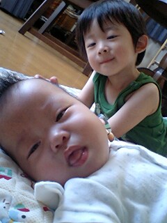 朝からセミが元気に鳴いています。暑そうです。今日も・・・長男は、朝から主人に「遊ぼう、遊ぼう!」と攻撃していました。私も主人も参ったので、主人の実家へお願いしてみたら。OKもらえました。なので、張り切って長男は出かけて行きました。今とても静かな我が家です♪主人のお兄さんがカブトムシをずっと育てていて、去年も2匹もらいました。そのカブトムシたちが産んだ卵を見事に孵化させて今元気に育っているらしく、そのカブトムシを今日もらってくるそうです。長男、1mmにもならない蟻の赤ちゃんだって怖いのにカブトムシなんて絶対に無理だろうな~まぁ世話は主人が率先してすると思うのですが。今日は午前中に用事を済ませて、午後は少し仕事に行って長男の迎えに行こうと思います。最近弟に表情がついてきて、お兄ちゃんを目で追うようになってからお兄ちゃんも弟がカワイイみたいです。たまに泣いている弟に向かって「うるさい!」なんて言ってるけど色々とかまってあげています。そのうちケンカもするようになるんだろうな。弟のほうが、強そうな顔立ちです!!!(笑)賑やかな長男がいなくて、次男はお昼寝中。私は、ゆっくり紅茶でも飲もうかな~^^今日で7月も終わりです。もう8月。今年もあと5ヶ月ですね。時間が過ぎるのがとても早いです!30過ぎたら早いって本当だ~~~~~^^;