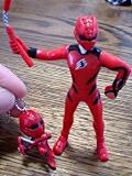 台風は明日の夜から明後日にかけて、一番接近するらしい・・・今は、台風が本当に来ているのかな?と思うくらい静かです。せいぜい雨が静かに降っているくらい。明日はどんなことになるんだか?我が家はベランダ側に面している窓が少しおかしいのか暴風雨のときは、サッシに水が溜まり、溢れてきます。本当はこんなことありえないんだけど、実際溢れます。気をつけておかないと、和室なんて水が畳に染みてきます。毎回、台風や雨が強い時(特に風もひどいとき)は気をつけて観察しないと!!タオルとバケツをスタンバイ状態にしておかないといけないかな?変なマンションです・・・。主人も福岡から無事に帰宅し、昼寝3時間バッチリしていた長男は元気に起きています。彼はこんな調子でいいのだろうか?ま、明日からお休みだからいいか~七夕のときに、お願いごとで「大きくなったら何になりたい?」と聞くと『ペット屋さん』と答えていた長男。(同じクラスの年長さんの真似をしていました)動物が怖いのに・・・と思っていて、今日改めて聞いてみました。すると、、、、『新幹線の運転手になりたい』だって。うんうん。それなら母さん納得。大好きだもんね!新幹線。少し自分の意見が出てきたかな?新幹線と同じくらい好きなものが、最近増えてきました。トーマスやアンパンマンはもちろんのこと、戦隊系も好きらしい・・・今流行りの「ゲキレンジャー」&「仮面ライダー 電王」とうとう、お決まりのコースにハマってしまったようです。少しずつ集まりつつある、ゲキレンジャーグッズ。あまり増えないことを祈りたいです。 意味不明ですが、ゲキレンジャーのポーズらしいのです。左側なんて、ゲキレッドもゲキブルーもゲキイエローも同じポーズです。なんなんだか? お恥ずかしながら、わたくしゲキレッドのことを何の迷いもなく 『赤レンジャー』と言ってしまいました(苦笑) 主人に速攻「違います。ゲキレッドです」と訂正されました。 かなり恥ずかしかったです。 赤レンジャー… それって、ゴレンジャーだったっけ? そんなお兄ちゃんを毎日観察している次男。最近は「ア~ウ~」とたくさん声も出始めて、少し動きも出てきたような。もう少しで寝返りかな?男3人で入っているお風呂は毎日楽しそうです。紅一点の私は、少々寂しいような、1人で満喫しているような。たまに女の子が欲しくなる今日この頃です。(もちろん3人目なんて考えられませんが!!)