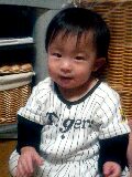 今日は阪神勝ったみたいですね。我が広島カープはいい試合だったらしい・・・延長10回、逆転負け。なんとなくそんな予感はしていたけど、やっぱり。トホホ・・・・(T-T*)フフフ…主人は勝って大喜び!私は。。いつものことと思ってしまう始末。週末、広島vs阪神戦があるらしく、大の阪神ファンの取引先のかたがわざわざ広島まで来られるようです。総勢6名で、車で。そして、主人も現地集合して一緒に観戦する模様。今日チラッと日程の紙を見せてもらったら、とっても面白い。1日目・2日目と予定が書かれてるんだけど、殴りこみで応援(確か…)とか、勝利すると確定した内容になっていました。そして、観戦のあとは広島のお好み焼きを食べに行くとも。主人も確認のメールをして、何か準備するものは?の問いに返ってきたものは・・・・勝利への執念だけを持ってきてください。と書かれていました。おもしろ~~~~~_( ̄▽ ̄)ノ彡☆ばんばん!阪神ファンは素晴らしい!!!そんな主人なので、長男が生まれてすぐに阪神の服を買ってきてました。それがコレ↓1歳くらいのころの長男です。これはもちろん次男にも着させます。この冬には着れるかな?そして、今現在の次男↓ 帽子の似合わないこと、、、、買ってきてたのを忘れてて、今日思い出しサイズを見たら、今しか着られない。危うく一度も着ないままサイズアウトになるところでした。危ない、危ない。w|;゚ロ゚|w ヌォオオオオ!!主人に怒られるとこだった。私以外、みんな阪神ファンになるのかな~?次男には無理やりにでも、カープの服を着させるべきか?悩みます。(~ヘ~;)ウーン************************************************************************* ひのきのまな板、いいのかな~? 今使ってるのは木じゃないから、気になるな~ またまたバテンレースがいっぱい!!!