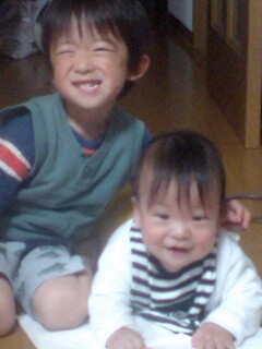 本日も男子たちは早々とご就寝!私1人、まった~りしてます♪明日はバザーの準備の日。私は行かなくて、主人が張り切って行ってくれます!助かります。日曜はバザー。天気もいいみたいで、良かったです。どんな作品を仕上げてるのか、今から楽しみです。家ではあんまり絵を描かない長男。幼稚園では、それなりに頑張っているらしい。初めてのことだらけの幼稚園。親も子供もドキドキ・ワクワクの連続です!そういえば、今日携帯で遊んでいた長男。彼のブームは「おっぱっぴ~」私は探して探してダウンロードしました!それを何回も何回も聞いていました。(うるさいくらいに)で、主人からの着信があったときに聞きなれない音が・・・・そうです!!長男が私の着信音を「おっぱっぴ~」にしていたのですw(゚o゚)w オオー!いきなり「そこの君~ でもそんなの関係ねぇ」と聞こえてきて私はビックリ。 笑わせてもらいました。ちびっ子にはブームみたいですね。先日も小学生が上手に踊ってました。(・m・ )クスッ そんなイタズラ盛りの兄弟です。・・・・・・・・・・・・・・・・・・・・・・・・・・・・・・・・・・・・・最近の主人。嬉しいことに仕事が順調に進み始めてるようです。それは本当に嬉しいのだけど、忙しい分家族と一緒に過ごす時間は確実に少なくなってくるみたいで…今月の残りも県内の出張が数回。来月は半月は家にいないかも~?と言ってました。(半月のまた半分は国外のようです)アメリカやヨーロッパなら、私も一緒に行きたいですが中国なので、「お一人でどうぞ~」といった感じです(苦笑)あ、でも来月は香港に行くと言ってたな~香港なら私も行きたい!(新婚旅行は香港でした。 なぜ? アメリカのテロがあった時期だったので)来月結婚記念日だ!!ディナーと行きたいけれど(久しぶりに)無理っぽい…(T_T)これからしばらくは、私が頑張ってやっていかねばなりませぬ。ずっと主人に依存しすぎていたので、いい機会かも?ファイトー!ヾ(  ̄0)乂(0 ̄ )/イッパーツ!このワンパク小僧2人を相手するのは大変ですが。 特にこの次男の悪そうな顔。動けるようになってからというもの、進歩が早い早い!主人もこの先相手が出来るのか、私は心配です(-。-;) ちなみに、長男のズボン前後逆です。 あちゃ~(ノ_-;)ハア…