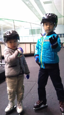 先日の日曜日、私は友達とお買い物。その間主人と子供たちは、スケートへ…子供たちにとっては初めてのスケート。 格好は一人前。行く前に、次男はすぐに「帰る!」って言うかな?とか思ってましたが、たっぷり遊んだみたい。長男はまず最初は1周手すりを持って。次は少し自分の力で。 8回くらいこけた。と言ってましたが、かなり頑張って滑る練習したそうです。最後には「シュー」って滑れるようになったと嬉しそうに教えてくれました。次男は…スケート靴があってなかったのか、足の甲が少し赤くなってたけど…彼も楽しんだみたい。それでも、楽しかったみたいで、体も動かしたから、いつもより沢山お昼ご飯を食べたそうです。今度は母さんも一緒にね。と誘われました。コケないように頑張らないと!! ウィンタースポーツが苦手な私と主人。スキーは無理だけど、スケートくらいならね。今度は私も一緒に行ってみよ~っと。