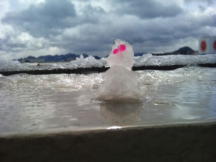天気予報通り、今朝は雪でした。布団から出たくない~~~さすがに今日は午前中みんな家の中でミノムシのように鳴ってました(苦笑)夫はお昼から月に1度の魚料理教室へ…私と子供たちは留守番。どこにも行きたくない~長男は、雪が止んだ途端に雪だるま!!と言い始めて、1人で雪遊びに出ました。といってもマンションの駐車場で、すぐに帰ってきたけど。手袋はビッチャビチャ。素手でやったほうが良かったんじゃ?と思ったけど…帰ってきて、ベランダにあった雪で、可愛らしい雪だるまを作ってました。 お日様が出始めてたので、半分透明…顔がないと可哀想。って言うので、ビーズを付けたら?というと何やらゴソゴソ探してピンクの目をつけてました。これは、長男が撮った写真です。子供目線はいいですね。お昼過ぎからは、雪もピタリと止み、太陽が出てきてるので、雪だるまは溶けてしまいました… バイバ~イ!洗濯物…昨日干したままで、取り込んでなかったので、雪があたり、一部はずっしりと重く。昨日なぜ取り込まなかったのか? 自分でも分かりません・・・洗濯物が溜まってる~一番嫌いな状態です。家の中は相当散らかってても、スルーなのに、洗濯機前が混雑してるのは、ダメなのです。浴室乾燥と、乾燥機使って乾かそうかな?タオルは、乾燥機使ったほうがフッカフカになるから好きなんだけど・・・今、太陽が出てるので、もう少し様子見て、それから決めます。あ、雪でヤラレた洗濯物は、既に取り込んでもう一度洗濯ですよ~雪にヤラレてないのを、自然乾燥するのを待ってます(一応ね)
