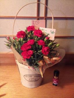 明日が母の日ですが、我が家は昨日渡してきました。とは言っても、主人のほうはお母さんが留守だったので今日になるかな?花は毎年色んなところで買っております。今年はアンジェのお花屋さんで買いました。私の母へは バームクーヘンのセット。妹もいるので(彼女はバームクーヘンが好き)ちょうど良かった。主人の母へは そのまま飾られるように、これ。あとは、小物類を一緒にね。昨日渡しに行って帰ってきたら、子供と主人から思いがけないプレゼントをいただきました。 赤いカーネーション。野球の帰りにみんなでお花屋さんに立ち寄って買って帰ってくれたようです(泣)これを選んだのは長男。THE母の日って感じですね~ 嬉しい!メッセージカードも書いてくれてました。2人が。次男はようやく文字らしき雰囲気が書けるようになり、自分の名前を。長男は「大好きだよ」ってメッセージを。玄関先に飾っております。あとは、次男が幼稚園で作ったプレゼント。 バッグに入ってて、「これは何?」て聞いてもトンチンカンな答え…私へのプレゼントだよね~って聞いたら「パパへ」だって(号泣)可愛らしい似顔絵の裏には先生が代筆でメッセージが書かれてました。「毎日お弁当をありがとう」だって。申し訳ないくらいの悲惨で寂しいお弁当なのに…この絵は壁に飾っております。黒板も書き味が良くて…私が書いてると長男がやってきて、ここにもメッセージを書いてくれました。なので、私も下のほうに返事を(苦笑)来月の父の日には何をしよう?私の父へは焼酎かな?主人へは・・・・ ワイン???