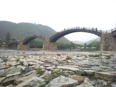 昨日の連休後半初日。次男の水疱瘡もようやく人にうつらないレベルになってきたので思いきって出掛けてきました。まだ水泡が枯れてる途中で、見苦しい顔の次男。ま、いっか・・・誰にもうつらないし。帽子被らせて、少しでも目立たないように。出掛けないのが一番なんだろうけど、ブツブツがあるだけで、他は超元気な次男。そして何もなく元気すぎる長男。家になんて閉じこもってられません。なので、お隣の県へ少しお出かけ~ 出掛けた先は、こちら↑錦帯橋です。久々に行ったけど、緑いっぱいでマイナスイオンを浴びてきました。前は「何がいいんだ?」と思ってたけど、やっぱりいい!ボーっとしながら座っていたかったです。出来なかったのが残念。子供が一緒だとね。 とりあえず橋を渡って、上から川を眺める。魚が数匹おりました。 こんなキレイな風景。心が洗われます(笑) 名物?!白蛇もしっかり見てきました。いいことあるかしら???ソフトクリームを食べ、ウロウロし、最後は河原で石投げ大会。私も参加したけど、全然石投げが出来なくて・・・途中から見学してました。いか焼きとか焼きモロコシとか食べながら。 男子達は必死に投げてました。子供たちもハマったようです。「また来たい!」って言ってたので、相当楽しかったみたい。石投げが。 前歯が抜けて、食べるのも大変なのに、焼きモロコシに食いつく長男。口の周りがベトベトになってました。2年生でも。。。 関係ないんですね。 次男は、石が投げられる。という行動が嬉しかったらしく、そればかり。普段石なんて投げてはいけないって言ってますからね。川に向かってならOK!って言われたものだから、投げる投げる。あらぬ方向にいきそうでヒヤヒヤしたけど。久しぶりに外で思い切り遊べたせいか、次男はグッタリ。よく寝ました~ちなみに、今日は何度か行ったことのある「道の駅」に行ってきました。こちらも人が多くて…そして暑い!!結構早めに帰ってきたのです。明日は…私は久しぶり!?に友達と会ってきます。錦帯橋近くに住んでる友達と♪子供たちは… 主人と何かするんだと思います。自由行動だ~~~~~ ^^v
