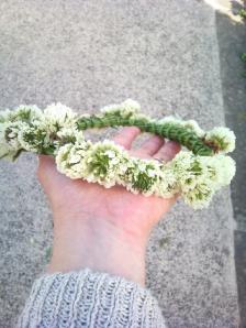 今日は、夕方長男の野球の練習がある日。いつも、公園で次男と時間をつぶしてるんだけど・・今日はその公園に沢山のシロツメクサを発見!!それを発見した途端、私の乙女心がウズウズ(苦笑)小さい頃1度も作ったことのない冠を作ってみたくなりました。作り方を必死に思いだしながらトライ。最初にできたのは、まぁ見苦しい…大失敗に近い出来。悔しいので、携帯で作り方を調べて、再度チャレンジ! ププ!結構上手に出来ました~でも、最後の止め方が難しい。適当にやったので、きっと絶対間違ってる(笑)そこは御愛嬌ね。もちろん、被りました。 娘がいないので、息子で。いや~~~~! 似合わん。息子よ、似合わないぞ!あまりに楽しくて、 2つも作った私です。満足だ~~~結局2本とも、最後の終わり方が微妙な感じ。きっと不器用なのもあるんでしょうけどね。 息子じゃあまりにも、絵が汚いので私も乗せました。私のほうが汚い?!こういうの、楽しいですね。どうして小さい頃やらなかったんだろうか・・・?答えは一つ。興味がなかったから。野球のほうが好きだったので(笑)車の中がシロツメクサの香りでいっぱいになりましたとさ。