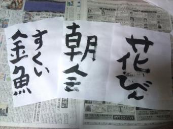長男が学校で初めての書道をやってから、家でもやりたい!って言ってきます。筆と半紙を調達し、自宅でプチ書道教室をしました。新聞紙を大量に敷いて、硯がないので、主人の捨てる予定のお椀に墨を入れて・・・入れた途端に、お椀の底から漏れてきて(汗)アリャリャ!こんなのでお味噌汁食べてたの? ホント驚きです。もちろん、今は他のを使ってますけどね。陶器のお皿に墨を入れ替えて、さぁ始めましょ~私も一緒に書きました。2人でせっせと書いてたら、次男がやってきて、筆を奪われ次男と長男、たまに私。で書道タイムです。長男は漢字を勉強し始めて、色んな漢字を書いてました。ド下手なのは御愛嬌。人生2度目の書道ですからね。何事も「楽しんでやる」が大事です。 花って書いたと思ったら、その下に「びん」花びんだそうです(笑)朝会。体育朝会とも書いてたな~。子供って楽しいですね。思ったこと書いてるんだから… 次男作。私と長男のを見よう見真似で書いたようです。左手で、書いたことのない漢字。書き順は驚くほど酷いですが、それでも字になってました。 これは・・・長男と私の作品。さぁ、私のはどっちでしょう?(簡単ですね 苦笑)一応私のは右側です。昔昔に習っていたとはいえ、やはり十何年!?(もっとかな)書かないとダメですね。昔書いたことのある字を他にも書きました。 とても「大人らしくない」ものですみません。まだまだ未熟すぎます。長男が書道教室に通うことになったら、私も一緒に♪ dahl'ia(ダリア)のリボンのバッグ。とってもかわいいです。私は小さいのを持ってます。 ワンポイント(にしては大きい)が最高!母にはバカにされたけど… ideaco(イデアコ)のハーフティッシュケース。私も愛用しています。 色はブラウン(黒に近いけど)本当は白が欲しかったのですが…フェリシモで買ってたハーフティッシュが大量にあって、どうにかうまく使えないかと。そんなときに発見したのです。大体の人は普通のティッシュをハサミでカットしてるようですがフェリシモのハーフサイズを使えば、そんな手間は必要なし!もう一つ買おうかと思ってます。ダイニング用に。 今度は白かな? イデアコのものってシンプルなのに、良い感じです。私も知らない間にイデアコのもの持ってるし…下のラップホルダー最近買いました。30cmの長いサイズを。市販のラップを入れ替えるだけ。冷蔵庫にペタン!も便利です。引き出しから出してたんだけど… 面倒(苦笑)短い22cmも買おうかな?って思ってます。色が悩みますが…