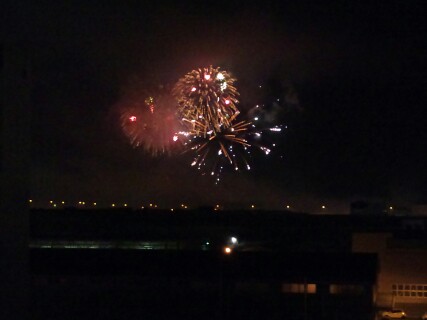 月曜日の今日は、主人の会社が休み。初めて聞く「家族の日」という名の休日らしいです。社員さんは出勤してお仕事してたようですが…主人も午前中は仕事に行き、午後からは家族サービスでした!土日も家族サービスしてくれたんですけどね。まず、土曜は。 恒例の花火大会!前の自宅から最高の眺めで、毎年特等席で見ています。今年は、早めにマンションに帰り、現場まで歩いて行って…でも、打ち上げまでの数時間を子供と過ごすには苦痛すぎるので結局自宅で見ることに。屋台が沢山出て、色々買いこみ帰りました。直線距離なんだけど、ひたすら歩くのは大変。子供が飽きないように、色々考えながら歩きました。一番きつかったのは・・・短距離競走!長男と全力で走って、どっちが早いか?の競争です。2・3回対戦しましたが、同レベル…(汗)私の俊足は既に過去の栄光になっておりました。全力疾走をしたせいで、筋肉痛にもなっております(泣)運動不足は良くないですね。鍛えなくては!! 最初は大きな音にビックリして、耳を塞いでた次男。だんだん慣れて、後半は楽しそうに見ていました。 「た~まや~」という言葉が、あちこちから聞こえてきて(苦笑)声変わりをした、お兄ちゃんの声が一番大きくて、その声で聞こえてくるたび我が家の息子たちは大爆笑。1時間の花火大会、楽しんだみたいです。 やっぱり最後のクライマックスが一番素晴らしい!!!来年は…見られるかな?今は家族で見ていますが、そのうち彼女と見に行くって言われるんでしょうね~寂しい(泣)さて、昨日の日曜は…プールに行ってきました。次男の幼稚園のお友達を誘って。いつも我が家だけで桟敷に座って、かなり寂しいのですが、今回はお友達が一緒だったので、良かったです。 長男はマイペースで滑り台に行ったり、自由気ままに遊んで。 次男も楽しそう。写真を撮った時は、まだ人も多くなく寂しい感じでしたが・・・後半は人・人・人になっておりました。次男のお友達は初めての流れるプール。うちの長男に刺激されて、顔付けが出来るようになったようです。次男は…1回顔付けをしただけで終わり。ゴーグルあるのに、ゴーグルを付けて顔付けも嫌がり…私に似て「ビビリ」みたいです。2人共、真っ黒になり過ぎてます。次男は、「松崎しげる」に益々近づいていってるし(色がね)2日連続で遊びすぎたので、今日は私が放心状態。明け方の雷で目を覚まし、ラジオ体操は休みだな♪って思って二度寝。なかなか、体がシャッキ!っとしませんでした。年なのかなぁ?1カ月ほど前から「膝」が痛い私。主には膝裏なのですが、たまに前面も痛みが出ます。運動不足かな?健康な体で過ごしたいものです。