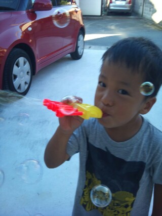 あっという間に7月も半ば。来週から夏休み…(汗)この調子だと、気が付いたら年末ってことになりそうです。今朝は、私が寝坊。ド・ビックリ…主人が内線を鳴らしてくれて、ガバッと起きあがり、時間を確認して倒れそうになりました。7時15分。ピンチ~~~~長男が出発するのは7時半前。お弁当どうしましょ…とりあえず、お米を入れて、チン!したり、残ってるものを詰め込んで。飲み物を作って。5分で出来あがり!間にあいました~♪やればできる(笑)今日は携帯のアラームが全然聞こえなくて、爆睡。どうしたんだろうか?何かおかしな設定したのかなぁ?一瞬、学校にお弁当届けないといけないか?と思ったけど。。。ホント良かった(泣)主人がいなかったら…完全に寝坊でした私。明日から主人が3日ほど香港です。気合い入れておかなきゃ!!香港いいな~暑そうだけど。最近は、あまりに日差しも強いし、暑いので子供たちが外で遊んでいても一緒になって外に出れません。昨日も日が落ちた6時過ぎにノコノコと外に出ました。次男が「シャボン玉やりたい!」って言いだしたので、付き合って。 吹き出し口が4つあるので、大量のシャボン玉が出来ます!楽しそうでした~私もやらせてもらったしね。これだけ暑いので、やっぱりプールを買って、庭に置きたいと思います。お隣さんは、お孫さんのためにプールを昨日出してました。それ見たら、やっぱり我が家にも欲しくなります。浴槽で水遊びじゃ面白くないからね~よし!今週末、買いに行くぜ。 庭も広いので、大きいのを置きたいな~私も一緒に入りたい!!(ご近所迷惑ですね)