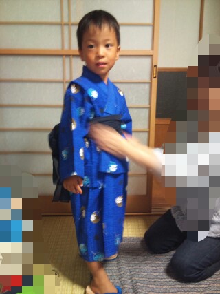 次男、幼稚園で盆踊りの日でした。前の幼稚園ではなかったので、初めての体験です。浴衣ももちろんね。焦って買いに行かなくていいように、なるべく早く買っておきました。でも・・幼稚園でみんなのを見たら…本格的な子が多かったような?ま、女の子のほうが断然可愛かったけどね。そんなに着ることのない浴衣だし、大金払うのも惜しいので、スーパーで3点セットの4900円でよしとしました(苦笑)下駄もセットだったけど、安っぽかった~本格的な下駄って、履いたら痛いんですよね。私も何度痛い思いをしたか。ましてや、履いたことのない次男に本格的なものは不要。スポンジみたいなセットの下駄でgo! 私が着せても良かったんだけど、なんせ初めてのことなので母のところで、一応着せてもらいました。几帳面な母。嫌がる次男を相手に必死でした。多少ズレてても大丈夫なんだけどね。可愛らしいものですね。子供の浴衣姿。長男は、珍しそうに見ていました。長男は持ってないからね。着た事もないし。写真撮るから!って言ったのに、このポーズ(怒) 何度言ってもまともな格好をしてくれない・・・パパに見せてあげるためなのに~~せっかくの盆踊りに中国だなんて。 来年はぜひ参加してもらいたいものです。 ようやく「まとも」に立ってくれました。肩が上がってるのは御愛嬌!メインの盆踊りですが、集合写真を撮るのが一番時間かかったかな?踊り自体は2曲で、比較的簡単で短いものでした。今、園庭に芝生を植えてて、成長中なので、とっても狭い境内で子供も親も祖父母も兄弟も… ギュウギュウです。私は病み上がりだったので、かなりきつかった~(泣)帰りたいけど、次男が解放されるまでは帰れないしね。しかも、一眼レフを張りきって持って行ったものの、望遠を忘れて…全然撮れない。撮ってもマメみたい(苦笑)おまけに、ビデオも忘れる始末。最悪です。アレコレ持って行ってたら、肩がゴリゴリ。カメラでさえ、重くて邪魔だったのに…体調が悪かったので尚更きつかったかな?帰る頃には、フラフラ。実家に帰って、ご飯をご馳走してもらったので、ラッキーでした。でも、疲れ果てて、ご飯より横になりたいくらいでした。なので、漬物とご飯って感じの夕飯でした。せっかく元気になってきてたのに、盆踊りでまたぶり返してしまったようで・・・夜は、また具合が悪く、熱っぽかったので熱を測ったら37度5分でした。 ガビーン。冷えピタ張って、眠れないから眠れる薬を飲んで寝ましたとさ。これで、何とか気になってた行事は終了。あとは、短期水泳教室に行って、金曜の野球に行ったら終了。主人が帰ってくるから、ホッと出来ます! これは、次男が作ったうちわ。可愛いね~私が作った時は、メッチャ不細工で(苦笑)今でも覚えてます。へんてこりんな顔の張り絵を。裏にもね、可愛いものが・・・ アリ? ハチ??も張り絵になってます。こんなところに~~~ 微笑ましい☆