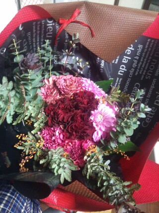 金曜から熱を出していた長男。昨日、どうにか熱も下がり、元気いっぱいに復活…ホッとしてます。もう、熱は勘弁です!!暖かくなるし、今回の熱が最後にしてもらいたいものですが…と、子供たちも元気になったので、今日は私の車を受け取りに。ウホウホ気分でお店に行ってきました。子供たちは主人の実家へ。そこで、素敵な素敵な花束をいただきました!こんなサービス?!意表を突かれまくって・・・ビックリ!さすが、一流だわ~って、主人からもらう花より、何倍も感激しちゃった私です。主人は前もって言われてたらしく、この演出のことを知ってました。なんて隠すのが上手なんでしょ~大きめな花束だったので、存在感が!!この花束をいただきました。車にウキウキでしたが、この花束をもらってから、そっちに気がいってしまい・・・女子ってやっぱり、こういうサプライズは嬉しいものですね!私も女子だったんだわ(笑)あ、花で思い出した?!ホワイトディのお返しに主人と子供たちからも、花をもらってました。バラ☆長男が選んだそうです。こちらも、かわいい…バラって育てるのが難しい?上手に育てれば、何年も咲くのかな?私に育てられるか微妙ですが…来年も咲いてくれるといいな~両方、玄関に飾ってます。