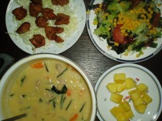 画像は今日の晩ご飯。家族が元気で機嫌良く晩ご飯を食べてくれるのって、感謝しなくちゃいけないことでしたね。 知り合いの若いご夫婦が、もめています。ご主人の今の職業は、忙しく使われてお給料は安い、そういう悪い伝統(?)のある職種なのです。 奥さんの方は、子供が産まれてからは特に、その職場はおかしい、そうご主人に言うわけです。何とかしてもらうか、仕事を替わって、必要なお給料をもらってきてちょうだい、と言うのです。 確かにご主人の会社はおかしいのですが、内部告発で訴えるくらいの気持ちがないと、何も変わらないし、ご主人にその気はありません。 ご主人はその職種が好きで、プライドをもって働いているし、同じ職種の人は同じレベルの給料でやってるというので、奥さんのお願いにさっさと転職する気はありません。一生懸命働いているのですよ。気持ちは分かります。無駄遣いもせず、休みの日は子守も家事もしています。 お金がいるの!と思った奥さんは、小さな子供たちを預けて、働きだしました。そしたらお決まりのすれ違い、というのが起きたのです。夫婦、親子水入らずで過ごす時間が激減しました。奥さんのきょうだいと両親が、ご主人を責めだしました。 奥さんの気持ちだって分かります。子供がいて、お金があまりにもない状態は不安です。夫は子供が寝ている間に出勤し、寝てから帰宅する。たまにしかゆっくり会えないのに、お互い疲れて怒りっぽい。 ご主人も奥さんも、素直で働き者の感じのいい子たちで、こういう話を聞くと、やりきれない気がしますね。ご主人の会社は、名前を言えば皆さん多分ご存じです。入社の時、こういう現実は知らなかったのだと思います。 会社は、従業員のことを真剣に考えたりしてくれません。だから労働組合が出来たりしたわけですが、それがきちんと機能していない会社も、まだまだ多いのだろうと想像できます。「美しい国、日本」への道のりは遠い。 そんなことを嘆いていても仕方ないので、この2人の子供の親である、このご夫婦が、この試練を、思いやりをもって乗り切って欲しいと、これはもう、切実に思います。 今は相手を責めているけれど、本当はお互いに、相手も気の毒だと、思っているに違いないのです。 お金がない!っていう悩みは切実です。今は2人分の保育園代にお金が消えちゃうけれど、それは短い間の事だから、とも思うのですけどね。 働いた内容と時間に見合うだけのお給料を、感謝して受け取れる人がいっぱいの国に!あまりに長時間の拘束は、従業員の家庭生活を壊すと、きちんと認識して当たり前の国に! こういう普通の発言を文字にしてみると、すごく甘い考えみたいに見えるのが、怖いですね。 ご主人の会社、この職種では普通だというけれど、労働時間の長さとお給料の低さがあまりに露骨。せめて「あなたのために決してならないから」と、「この不当さに耐えるエネルギーがもったいないから」と、「自分の優先順位のどのあたりに家族がいますか?」と、そういう理由で説得してあげたい。 一生懸命働いてくれている人に「お給料が安い」だなんて、奥さんの親に責められるのを想像しただけで胸が痛い。奥さんの気持ちも言うこともわかるのだけれど、もし自分の親が夫をののしったら、夫をかばってほしい。 何にも出来ないくせに、1人で切なくなっております。