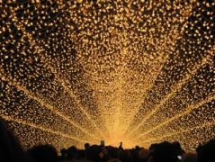 点灯式は5時半。この光の回廊を渡ると、向こう側にオーロラがありました。 これは赤いオーロラのイルミネーション。青い部分は空なので、時々流れ星の演出が。作り物とわかってても「願い事しなくちゃ!」とはしゃぎあうおばちゃん2人組でありました。 友人となばなの里のイルミネーションを見てきました。三重県にはナガシマリゾートという大きな施設があり、なばなの里はそのひとつの、お花で有名な施設です。他にはナガシマスパーランドという遊園地と、そのオフィシャルホテルが3つ、ジャズドリーム長島というアウトレットの施設、湯あみの島という温泉があって、それぞれの施設がけっこう広いのですよ。 12時に出かけ、ジャズドリーム長島でランチを食べました。きれい!と思ったバッグがありましたが、お値段を見ると、10万円以上のお品でした・・・。もちろん手が出るお値段のものもたくさん売っているのですが、最初にバッグのお値段にがつんとやられまして(笑)、雑貨を数点買っただけで、後はウインドーショッピング。 その後、すぐ近くにある、なばなの里に向いました。今はお花は少ない代わりに、イルミネーションがすごいです。ここのイルミネーションは、ハンパではありません。今回のテーマは「オーロラ」ということで、8000坪の敷地に200メートルのオーロラが作られています。このオーロラが色を次々と変えていくのです。流れ星の演出もあり、感動的でした。 池にある水上イルミネーションもきれいでした。楽しんでから、温泉に入りました。なばなの里の中にも温泉があるのです。近くの「湯あみの島」の方がうんと大きな温泉ですが、泉質は、なばなの里の温泉の方がずっといい気がします。温泉とおしゃべりを満喫してから帰宅しました。楽しかった~!