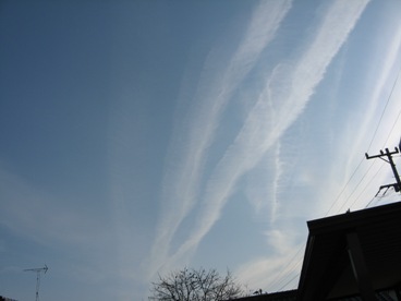 メリーが見つかって、幸せ一杯のkoalaですが、空にはまたこんな地震雲が。 東北方面に向っています。愛知県よりも東北に当たる地区の方は、一週間ほど地震にご注意下さい。でも、そちらの方面は、本当に地震が多いですよね。とにかく大きな地震でないことと、原発周辺に地震が来ないことを祈っています。 ところで、この写真を撮ってから、シュウトメちゃんの病院の送迎があったのですが、車の中から見た空には、なんと西の方向にも地震雲が伸びていました。日本中で地震があるのかな・・・。とにかく昨年からとても地震が多いので気になりますね。私の住む愛知も、時々揺れてます。とりあえず少しだけ気を引き締めていきましょうか。