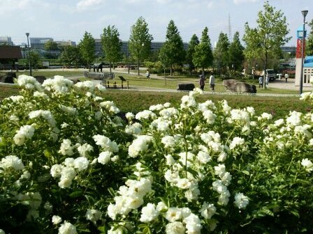 昨日の工事は午後1時くらいに終わりました。その後、大工さんと入れ替わりに介護リフォーム担当の方がいらっしゃり、書類の手続きを終えても2時くらいでした。4時半から、駅近くで用事がありましたが、おなじ方向に小さな薔薇園のある公園があるのですよ。 ネット友の皆さんが、薔薇を見に行かれた画像を見て、薔薇を見に行きたい気持ちが高まっていたので、思いついて出かけてきました。 薔薇は満開。 風の強い日で、薔薇の花も揺れていました。 こんなに満開なのに、空いてたのは、きっと強風のせい。 何しろ、私の家の物干し台が転倒したほどの強風でした。 薔薇の甘い香りが漂う公園は、強風の日でも素敵でした。 アップの画像もお楽しみください。 風で散った花びらがそこかしこに・・・。