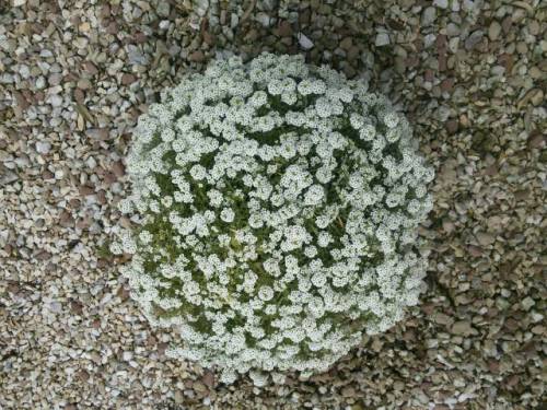 今日は仕事は休みで、歯科治療の2回目。抜歯覚悟で行ったら、大丈夫みたいでよかったです。ざっと表面の歯石だけ取ってもらいました。今後3回に分けて、しっかり歯石を取ってもらいます。別の個所の虫歯が見つかり、次回、麻酔して治療です。何年も歯医者さんに行ってなかったので反省し、来年からは毎年行くようにしようと思いました。こう思うのは、初めてじゃないんですが(汗)、将来の入れ歯をなるべく防ごうと思ったら、今からそうしないと遅い気がしてきました。出かけにシュウトメちゃんが、かかりつけ医で薬をもらってきてくれと言うので、病院のはしご。1週間前に診察に来たばかりでしたので、その時お願いするのを忘れた薬をいただきたくて・・と言うと、シュウトメちゃん不在でも、すんなり出していただけました。病院のはしごをしたらお昼を過ぎてしまったので、私とシュウトメちゃんのランチは帰りに買ってきたもので済ませました。--------------------------------------------------庭の花にアブラムシがついたので、薬を買いに行き、ついでにお花を何か買おうと思って見ていたら、鉢植えのスーパーアリッサムと言うのを見つけました。すごいボリュームで見とれてしまったので、それを購入。上から写すとこんな感じです。花は普通のアリッサムを少し大ぶりにした感じですが、葉っぱの感じが違います。庭に置いたので、こんな感じ。本当は、自分で育ててここまでこんもりさせるのが醍醐味ですが、ちょっと一目ぼれしたので。--------------------------------------------------話は変わりますが、昨日の日記に書いたように、パラレルワールドがあるような幻想を、ふっと味わえたのは、テレビの映画のおかげです。確か1週間くらい前、テレビで「 クラウドアトラス」をやっていました。映画館に見に行って、かなり感動した映画でした。改めて見たら、これ、パラレルワールドの話じゃないですか。(個人的見解ですが。)映画の時間軸がわざとめちゃくちゃになってるのは、時間なんて幻想だよという意味なんだろう、普通に前世、来世があるという話だろうと、映画館では、軽くスルーして見ていました。この映画、時代が違う複数の話が、少しずつ進むんですが、これは複数の世界があって、ある世界で起きることが別の世界に影響を与えているっていう意味だったみたい。(しつこいですが、個人的見解です。)それに気が付いたら、ふわっと、パラレルワールドがあるような感覚に襲われて。かなりリアルな感覚で、面白い経験でした。別にこの世がパラレルワールドであってもなくても、どっちでもいいです。そうかもと思えただけ。確認しようもないです。映画の作り方が上手かったから味わえた感覚かも。昨日の日記の関連で、書き留めておこうと思い追記しました。--------------------------------------------------昨日は友人に誘われて 夜に日帰り温泉に。話が盛り上がって、楽しかったです。とりとめのない日記ですねぇ。私の脳みそみたい?(笑)どうも失礼しました。